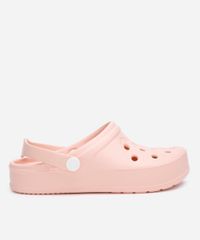 Babuche infantil confeccionada em material emborrachado resistente. O modelo tem bico redondo e cabedal com recortes vazados. O modelo possui solado anatômico e tira posterior para melhor fixação. A sola é texturizada e auxilia no caminhar.