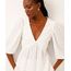 Bata feminina confeccionada em laise com bordado étnico e vazados. A peça tem modelagem acinturada com caimento solto ao corpo. O modelo tem decote em V e mangas bufantes com elástico aplicado nos punhos.
