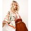Blusa feminina confeccionada em malha de viscose com toque leve. A peça possui modelagem bata com caimento solto, mangas curtas e amplas, decote V frontal e detalhe de recorte posterior, estampa de folhagem com cores contrastantes, elástico embutido na barra e acabamento pespontado.