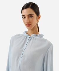bata feminina com babado texturizada azul