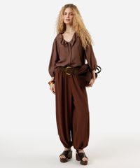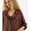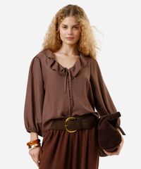 bata feminina com viscose e babados manga longa marrom