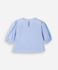 Bata infantil confeccionada em tecido plano com padronagem listrada. A peça tem a modelagem reta e o caimento é confortavelmente solto ao corpo. O modelo tem gola redonda com abotoamento, mangas 3/4 com elástico nos punhos, detalhe de laços aplicados na parte frontal e acabamento pespontado. Composição: 55% poliéster 45% algodão Instruções de lavagem: - Temperatura até 30º - Não alvejar - Não secar em secadora - Secar na vertical - Passar em temperatura média - Não lavar a seco - Limpar a úmido