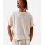 Bata masculina confeccionada em tricot com tramas espaçadas. A peça tem a modelagem e construção reta e o caimento é confortavelmente solto ao corpo. O modelo tem gola portuguesa, vista com botões e mangas curtas.