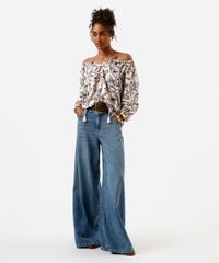 • Decote ombro a ombro, no estilo ciganinha, com elástico e uma delicada tira para amarração.