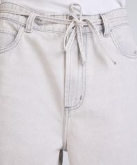 Bermuda masculina confeccionada em jeans com efeito estonado. A peça possui modelagem baggy com caimento solto, cintura média, cós com passantes aplicados e cordão removível para ajuste, fechamento frontal por botão e zíper, três bolsos frontais e dois bolsos posteriores, acabamento pespontado.