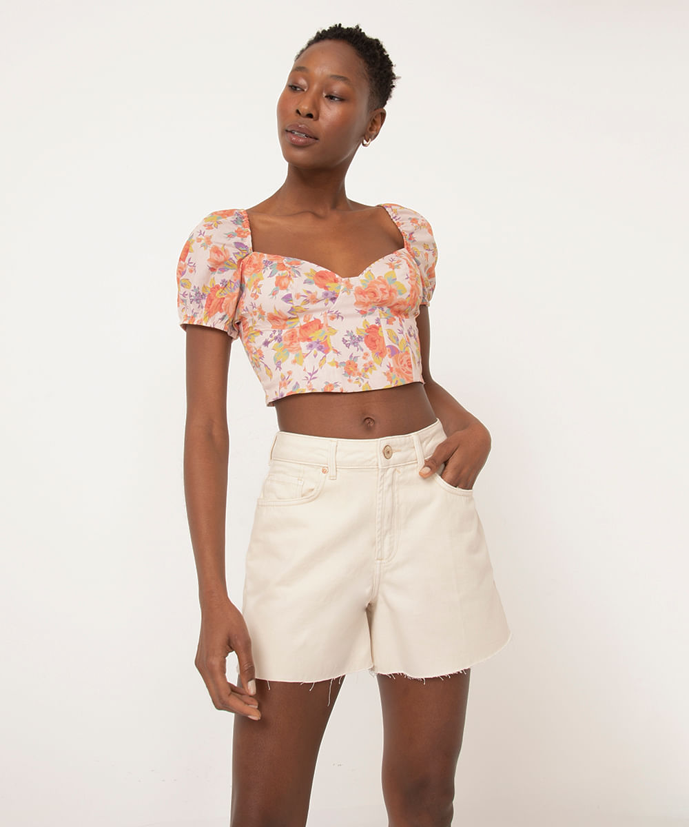 bermuda de sarja cintura média bege claro