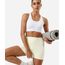 Bermuda feminina confeccionada em malha de poliamida. A peça possui cintura alta, cós elástico, bolsos laterais em cor contrastante, caimento confortavelmente ajustável ao corpo e acabamento pespontado.