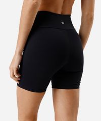 Bermuda feminina esportiva confeccionada em malha de poliamida. A peça tem modelagem reta e caimento solto ao corpo. O modelo tem cintura alta, cós largo e liso. Detalhe de acabamento pespontado nas barras.