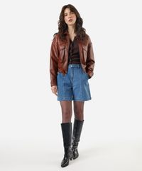 bermuda feminina jeans com recorte cintura alta azul