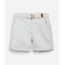 Bermuda confeccionada em sarja. A peça possui cós com passantes aplicados com cinto ajustável, dois bolsos frontais e dois bolsos posteriores decorativos. Caimento reto e acabamento pespontado. Fechamento por botão externo e interno com extensor de e