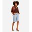 bermuda jeans feminina relaxed cintura média com cordão azul