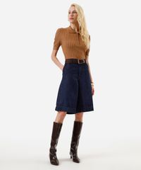 bermuda jorts feminina jeans com nervuras azul