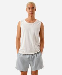 Para um visual descontraído, combine esta bermuda clara masculina com camisetas básicas ou estampadas e tênis casuais. Se a ocasião for um dia na praia ou um passeio à beira-mar, aposte em regatas e sandálias. Para um toque mais arrumado, uma camisa de linho de manga curta cria uma composição sofisticada e perfeita para o verão.