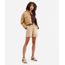 Esta bermuda feminina de sarja se destaca por seus detalhes cuidadosamente pensados: