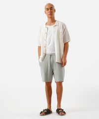 Esta bermuda clara masculina é extremamente versátil. Para um visual casual, combine-a com camisetas básicas ou regatas e tênis. Se a ocasião pedir um look de praia, aposte em uma camisa de linho de manga curta e sandálias, compondo uma ótima opção de roupa masculina para praia. A peça é ideal para quem não abre mão do estilo em momentos de lazer.