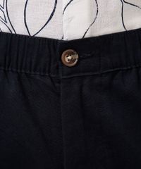 • Cós com elástico embutido na parte posterior e fechamento frontal por botão e zíper, para um ajuste perfeito e prático.