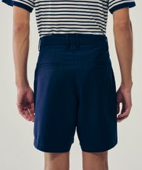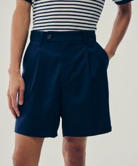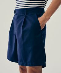 bermuda reta de alfaiataria com pregas azul marinho