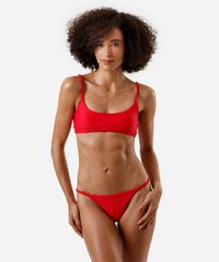 Biquíni calcinha feminino confeccionado em malha de poliamida. A peça caimento ajustado ao corpo, laterais finas texturizadas, cobertura mediana posterior e forro.