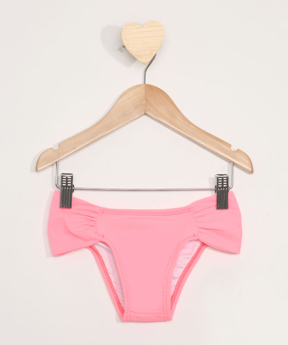 Para um look completo, combine esta calcinha de biquíni com um top da mesma cor ou crie um conjunto divertido com uma parte de cima estampada. A peça é versátil e fica ótima com saídas de praia, vestidos leves e chinelos. É a escolha ideal para montar uma roupa de praia infantil prática e cheia de charme para as férias e passeios.