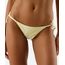 Biquíni calcinha feminino confeccionado em malha de poliamida com proteção UV. O modelo é tanga, com caimento ajustado, laterais finas com ajuste por amarração e cobertura mediana na parte posterior.