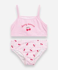 biquíni infantil vichy cereja rosa