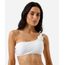 Biquíni top feminino confeccionado em malha de poliamida com proteção UV. A peça tem modelagem faixa, com caimento ajustado ao corpo, bojos removíveis, decote ombro único com alça larga e flor aplicada. Possui forro em malha.