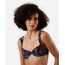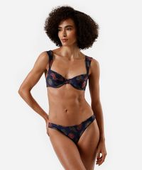 Biquíni top confeccionado em malha com proteção UV e estampa de conchas. A peça tem modelagem meia taça, com caimento ajustado ao corpo, aros fixos, bojos e alças largas ajustáveis.