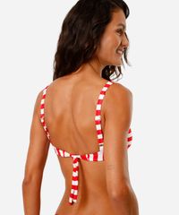 Biquíni top feminino confeccionado em malha de poliamida com estampa listrada. O modelo é meia taça, com caimento ajustado. bojos e aros para melhor sustentação. Possui alças finas ajustáveis e fechamento por amarração.