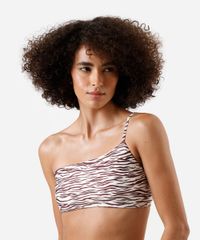 Biquíni top confeccionado em malha com proteção UV e estampa animnal print. A peça tem modelagem ombro único, com caimento ajustado ao corpo, aros fixos e alça fina.