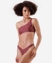 biquíni top ombro único feminino poá vinho