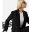 • Modelagem de alfaiataria com estrutura reta, ombros marcados e lapela clássica.