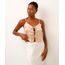 • Decote em V com fechamento por tiras finas para amarração, criando um visual delicado e moderno.
