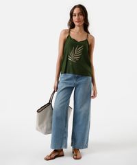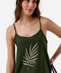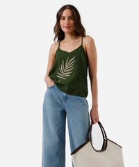 blusa alça fina feminina de viscose bordada verde