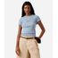 Blusa feminina confeccionada em malha canelada de algodão com bordado Snoopy na parte frontal. A peça tem a modelagem reta e o caimento é confortavelmente ajustado ao corpo. O modelo tem gola redonda e mangas curtas com acabamento pespontado nos punhos e na barra.