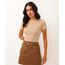 Camiseta feminina confeccionada em malha de algodão canelado com elasticidade e toque macio. A peça possui modelagem baby look com caimento justo ao corpo, decote redondo, mangas curtas e acabamento pespontado.