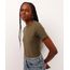 Blusa confeccionada em malha de algodão em textura canelada. Possui modelagem reta, ajustada ao corpo, mangas curtas, cavas regulares, gola alta, acabamento e costura pespontada.