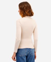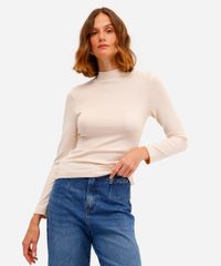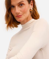 Blusa confeccionada em malha com toque macio. A peça possui gola alta, mangas longas, comprimento alongado, caimento reto e acabamento pespontado.