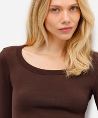 blusa básica feminina de algodão manga longa marrom