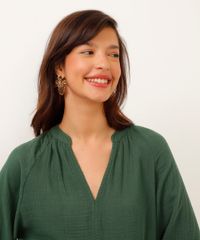 blusa bata de algodão decote v manga longa verde
