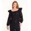 • Decote quadrado com aplicação de babados nos ombros, trazendo um ar feminino e atual.