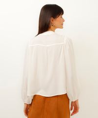 • Mangas longas bufantes com punhos ajustados por elástico, criando um volume elegante.