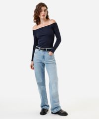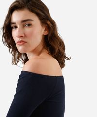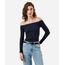 blusa cropped feminina de algodão ombro a ombro azul