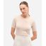 Blusa confeccionada em tricot. Possui modelagem reta, ajustada ao corpo, comprimento curto, gola redonda em textura canelada, mangas curtas e acabamentos em canelado.