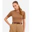 Blusa confeccionada em tricot. Possui modelagem reta, ajustada ao corpo, comprimento curto, gola redonda em textura canelada, mangas curtas e acabamentos em canelado.