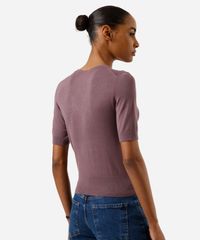 blusa cropped feminina de tricot manga curta rosa