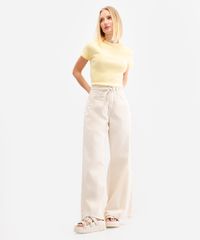 Blusa confeccionada em malha canelada. Modelo com caimento ajustadinho, decote redondo, mangas curtas e barra pespontada.