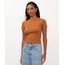 Blusa confeccionada em malha canelada. Modelo com caimento ajustadinho, decote redondo, mangas curtas e barra pespontada.