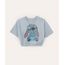 blusa de algodão infantil disney stitch com paetê manga curta rosa neon - azul claro