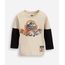 Prepare os pequenos para uma aventura jurássica com esta camiseta infantil! Perfeita para os fãs de dinossauros, esta roupa infantil une conforto e um estilo super descolado. Confeccionada em malha de algodão macia, ela garante liberdade para todas as brincadeiras, enquanto o efeito de mangas sobrepostas dá um toque moderno ao visual.