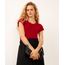 Blusa feminina confeccionada em malha macia de algodão. A peça tem caimento levemente ajustado ao corpo, com decote redondo e mangas copinho curtas.